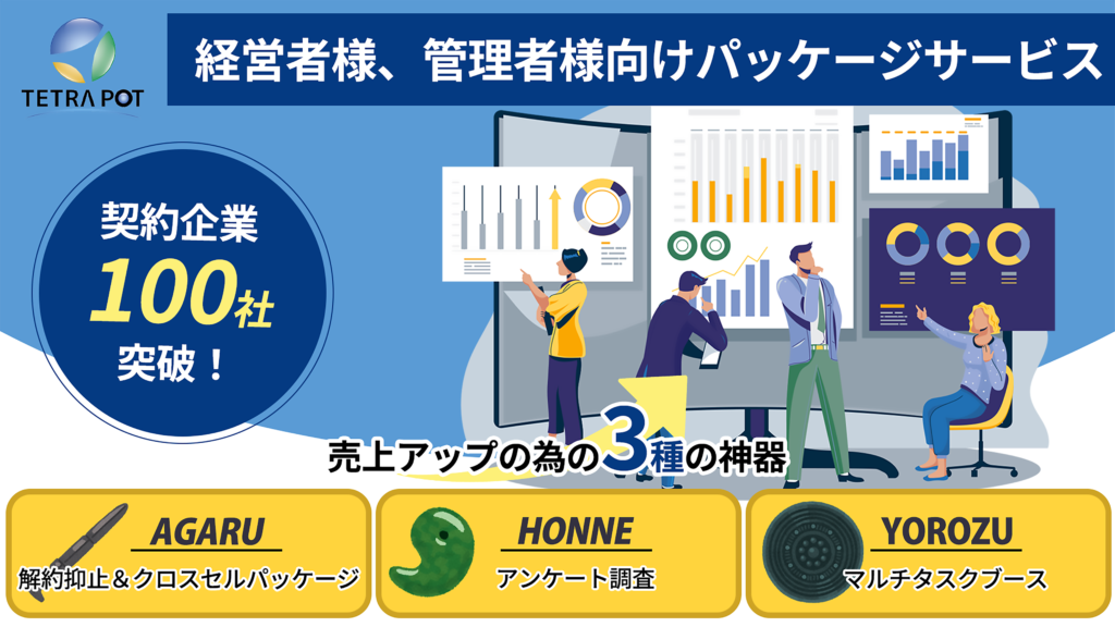 コールセンター業務において革新的なアプローチで長期にわたりパートナーシップを築くTETRAPOT株式会社(所在地:大阪府大阪市北区、代表取締役 髙谷 浩太)は、営業支援、業務効率化支援、アンケート調査業務における支援パッケージ「売上アップの3種の神器」の提供を2024年5月9日(木)より開始します。